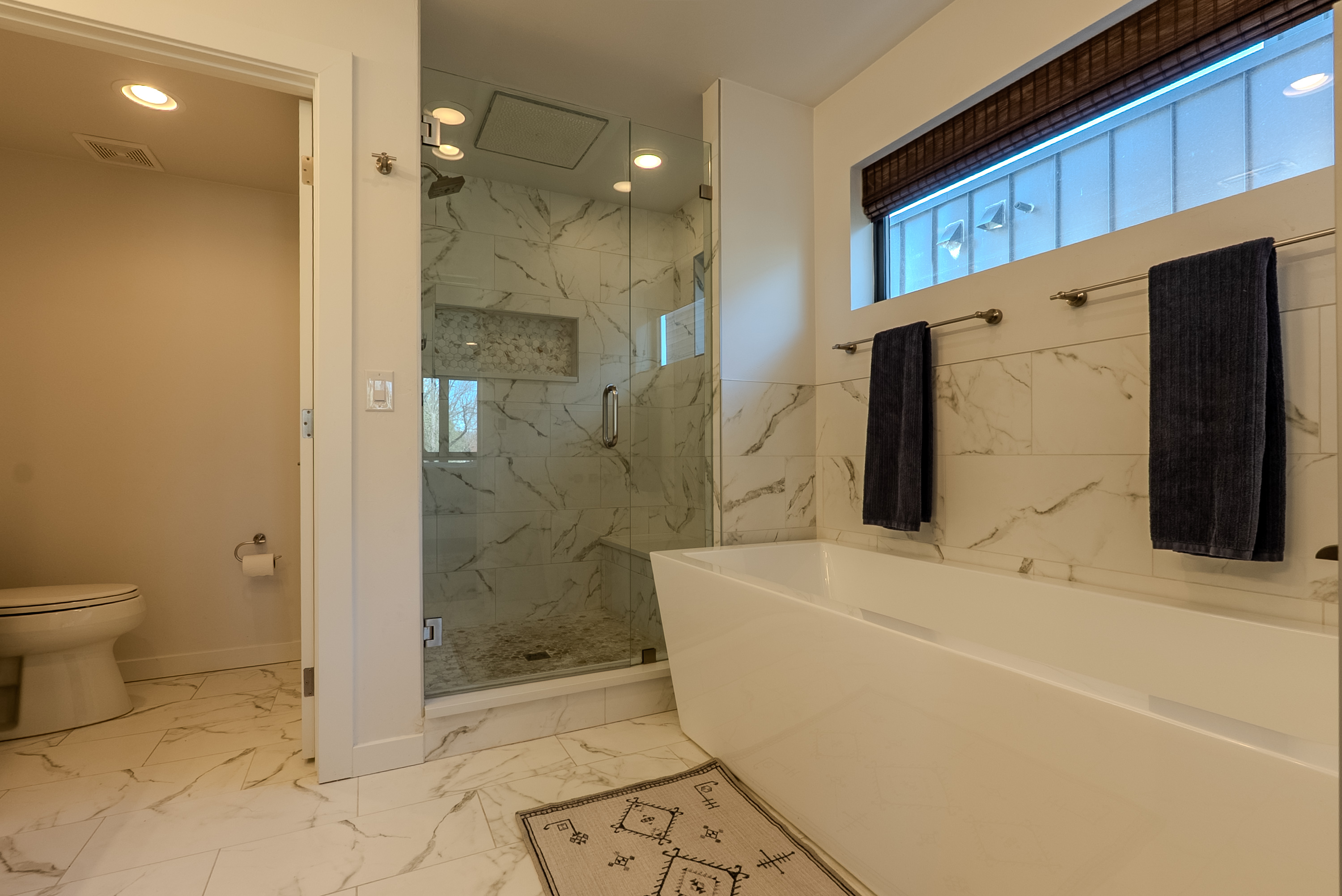 Top floor retreat with wet bar and sweeping city and mountain views.